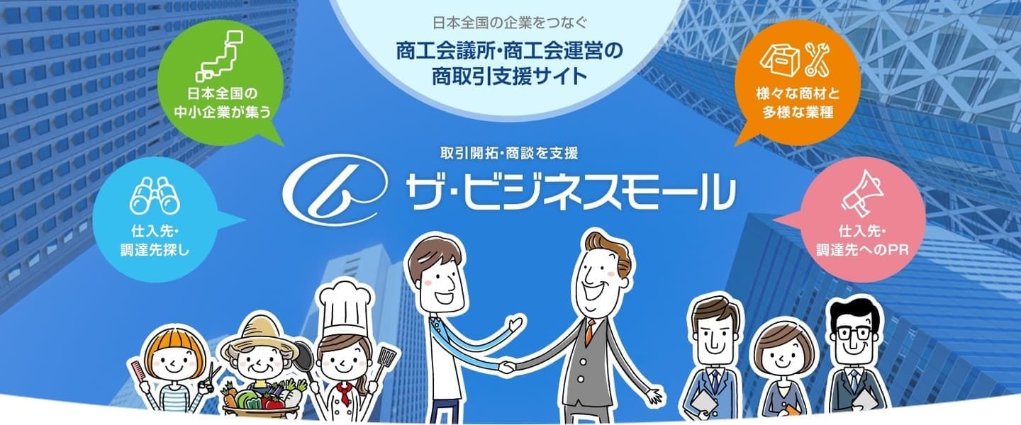 「ザ・ビジネスモール」とは、全国の商工会議所・商工会が共同で運営する会員限定の商取引支援サイトです。
