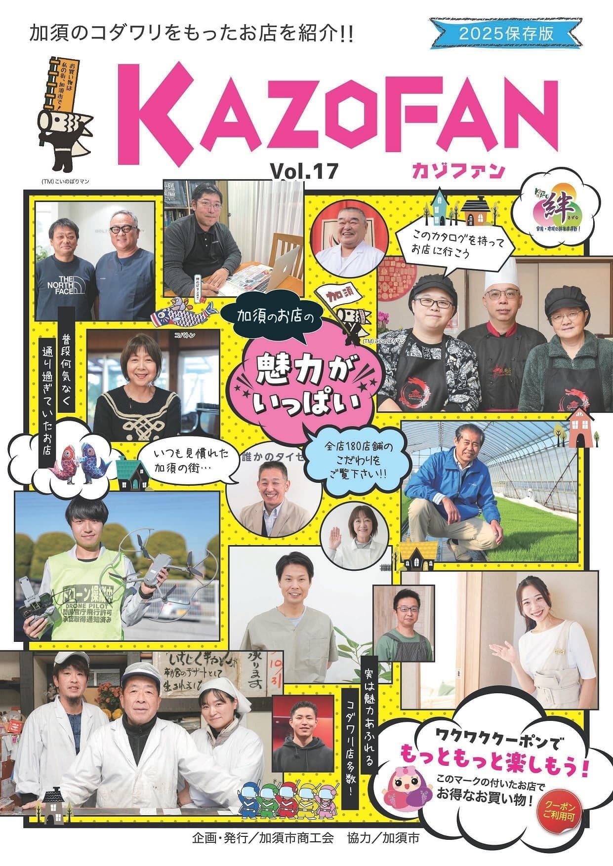本事業は、Kazo fan(カタログ)の発行を通じて、「うちのお店のウリはこれ!」「これはうちにしかない!」といった、それぞれのお店の特徴・コダワリを示す商品・サービス・メニュー・技術力・専門性の”価値“ ”個性” ”売る姿勢”など事業所の魅力を共同でPRするものです。