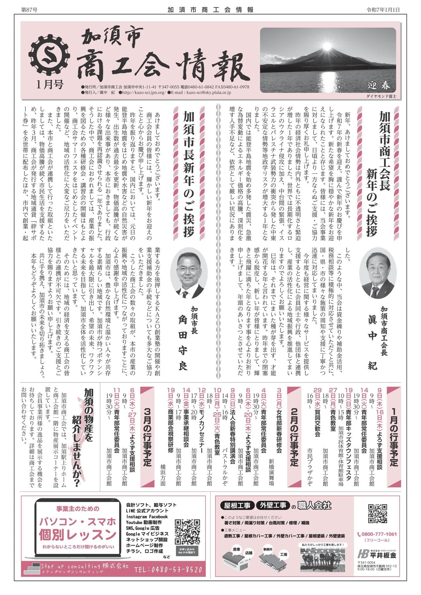 商工会員の皆様(約2,200会員)へ、有効な情報提供を図るため、年5回配布しています。(また、関係諸官公庁にも配布しています。) 定期的に、また、確実に商工会員の皆様のお手元に届くため、広告媒体としての効果が大いに期待できます。 加須市商工会ホームページに、バックナンバーとしてPDF形式で掲載していますので、会員以外の方にも広く閲覧されます。是非、広告をご掲載ください