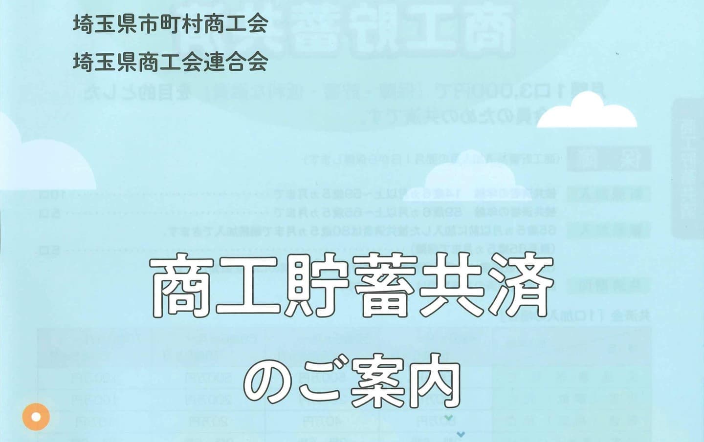 埼玉県中小企業共済協同組合が行うものです。生命傷害共済は、月掛800円で最高300万円の保障。傷害共済は、月掛300円で最高200万円の保証が受けられます。中小企業の経営者、従業員、家族の方が加入できます。