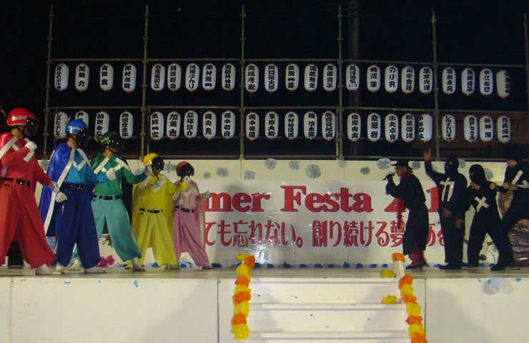 8月の第2土曜日、「商工会サマーフェスタ」を加須市北川辺総合支所 東側駐車場で開催しています。北川辺地域でうまれたご当地ヒーロー「稲穂戦隊スイハンジャー」のショーや大抽選会、うちわの絵柄表彰など。